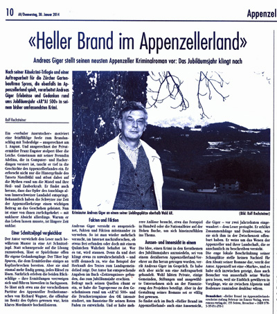 So findet sich im Buch «Heller Brand im Appenzellerland» auch eine Aussensicht, die Giger - vor zwei Jahrzehnten eingewandert - dem Leser preisgibt. Er erklärt Zusammenhänge und Denkweisen, wie sie sich ihm in der Zwischenzeit offenbart haben. Er weiss um das Wesen der Appenzeller und ihrer Landschaft, die er anschaulich zu beschreiben versteht.
