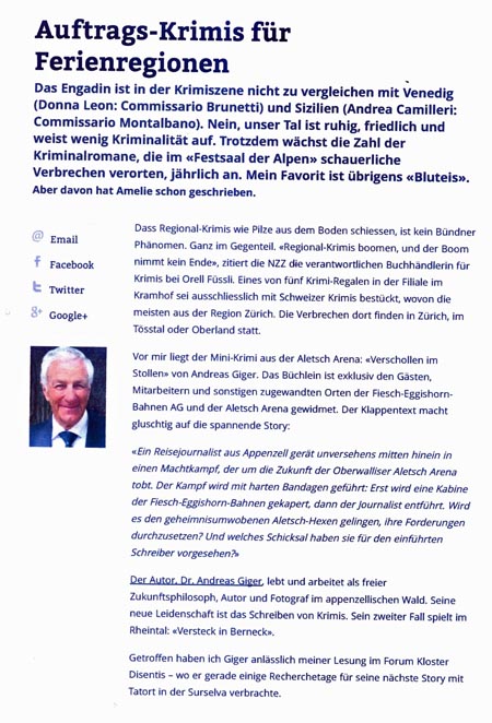 Der wegen seiner langjährigen Tätigkeit als Kurdirektor von St. Moritz weitherum bekannte heutige Berater und Publizist Dr. Hans Peter Danuser von Platen veröffentlichte in der SÜDOSTSCHWEIZ vom 30. August diesen