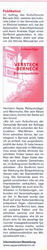 In der Zeitschrift SCHWEIZER GEMEINDE, Publikationsorgan des Schweizerischen Gemeindeverbandes, Ausgabe 7/8 2016, erschien dieser Beitrag: